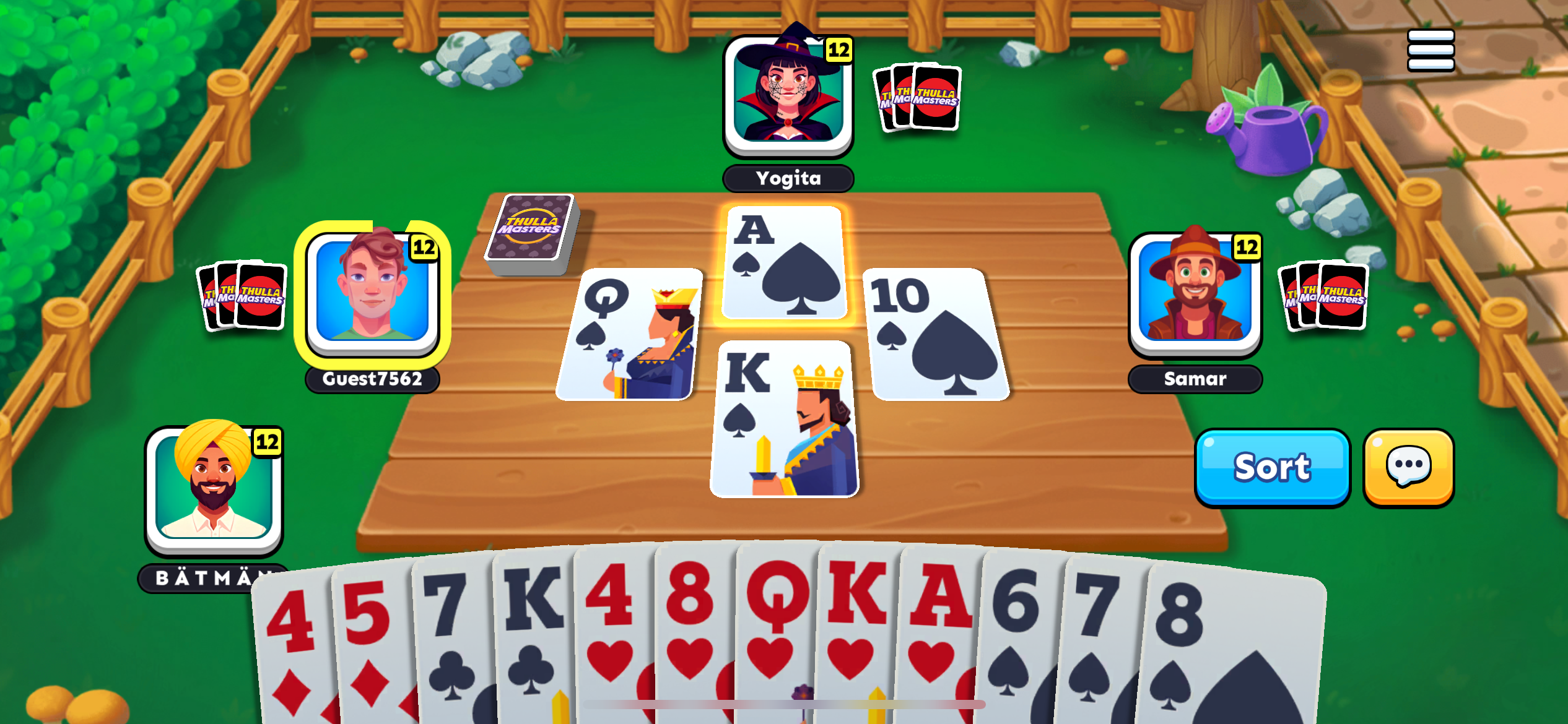 Avoid the last card trap and force your rivals into taking thullas. Outsmart everyone with smart suit plays and ruthless turn manipulation. In Thulla Masters, victory isn’t just about finishing — it’s about making others suffer!